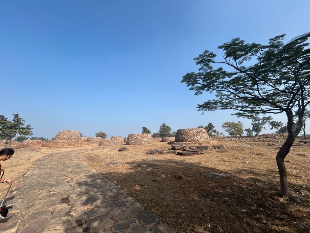 After breakfast and checkout, we departed Prayagraj at 10 a.m. On our way back, we made a culturally significant stop at the Deur Kothar Buddhist Stupas in Rewa district. Discovered in 1982, this archaeological site dates back nearly 2,000 years and is believed to belong to the era of Emperor Ashoka.